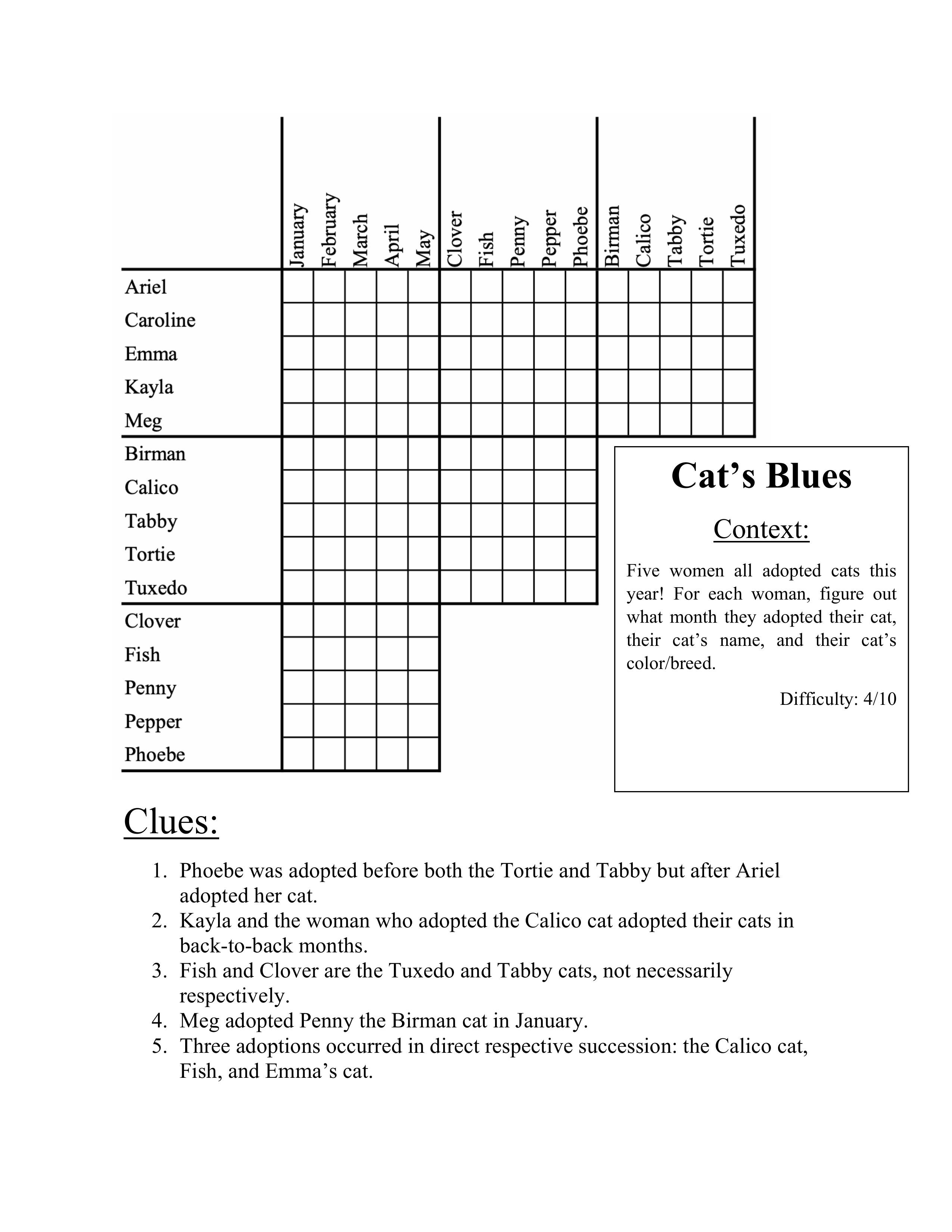 Answers to Cat’s Blues (Edit: these are the correct answers—thank you to MJ and Jacky for pointing out the typo!)